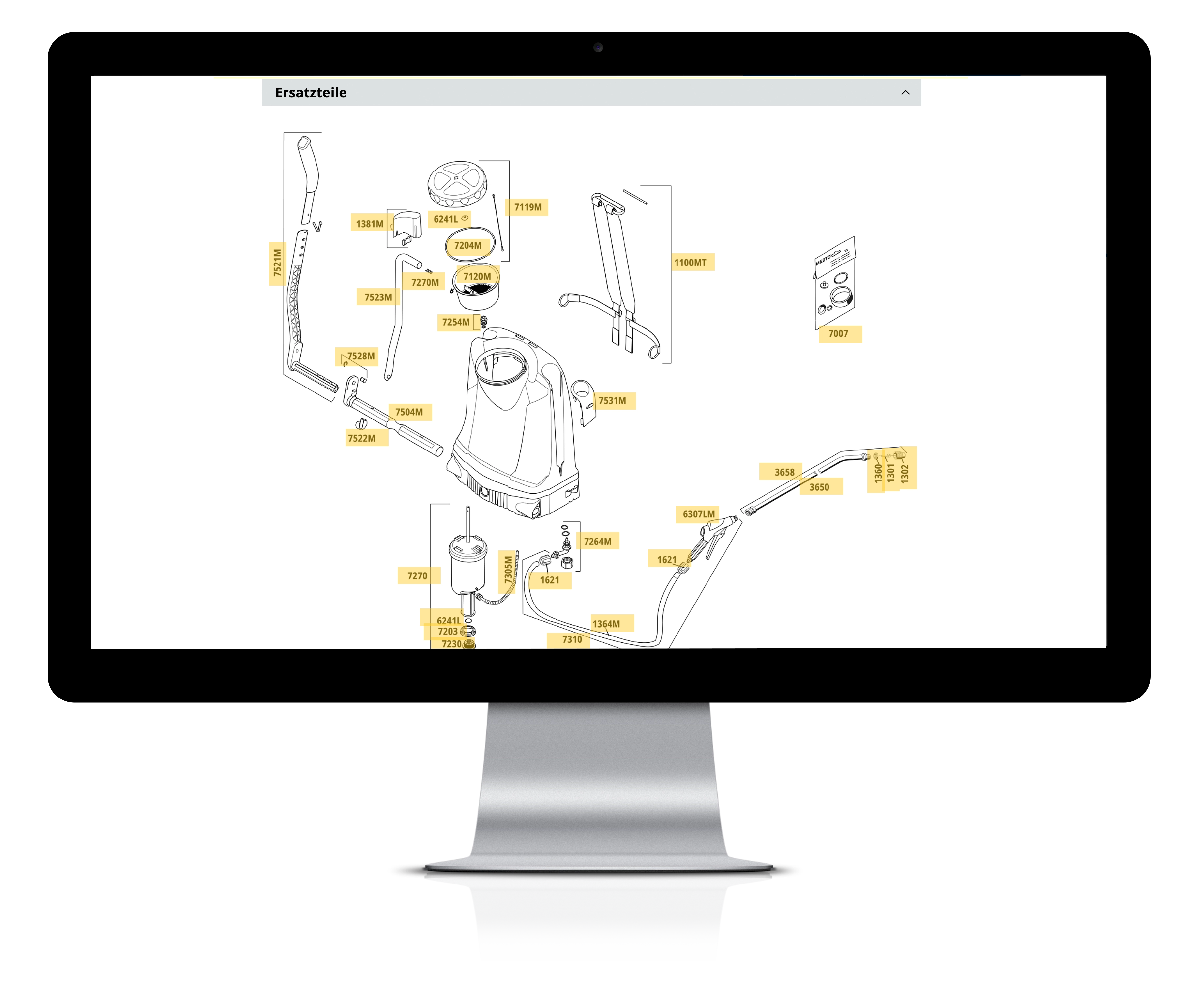 Zusätzlich dazu bieten Hotspots und Explosionszeichnungen eine intuitive Möglichkeit, spezifische Teile direkt aus einer visuellen Darstellung heraus auszuwählen. Diese interaktiven Elemente erlauben es den Nutzern, Ersatzteile im Produktkontext zu sehen und so schneller das passende Teil zu identifizieren. Dies ist besonders hilfreich in Branchen, in denen die Komplexität der Produkte eine einfache Identifikation erschwert.